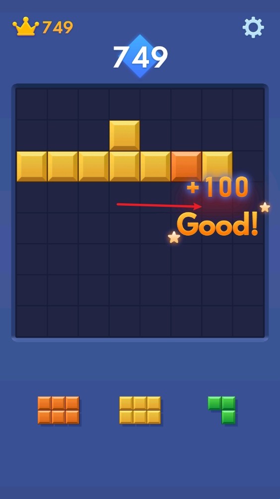 2、当整条或者整行凑齐了方块就会自动的消除,并获得对应的积分。