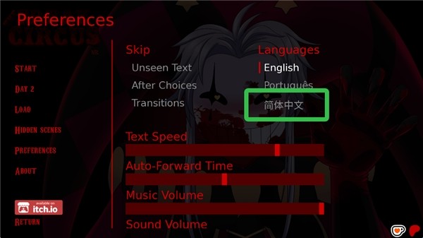 1、进入怪胎马戏团游戏,点击【PREFERENCES】。