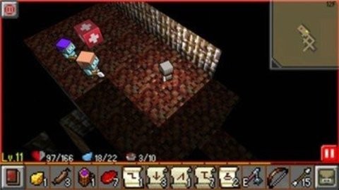 12、地牢中有一些楼层是给我们休息所用的,里面往往会有仓库、商店、铁匠台等方块,点击就可以使用。