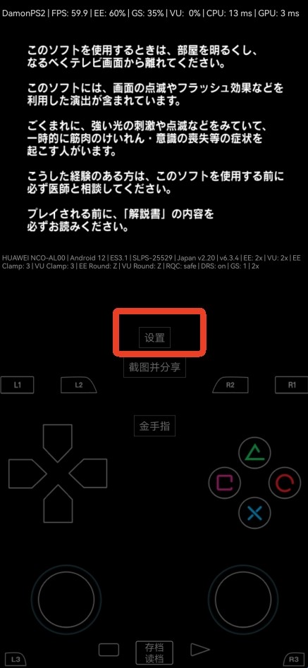 1、进入游戏后,点击中间的【设置】按钮。