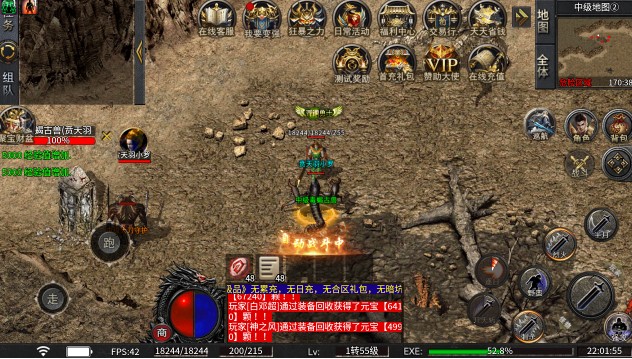 1、开启自动拾取和回收功能,挂机打怪收获大量装备材料。
