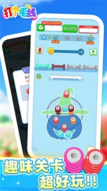 4、轻松风格:画面采用柔和的色彩搭配和Q萌的图案设计,搭配轻快的背景音乐和毛线缠绕的音效,营造出轻松休闲的游戏氛围。