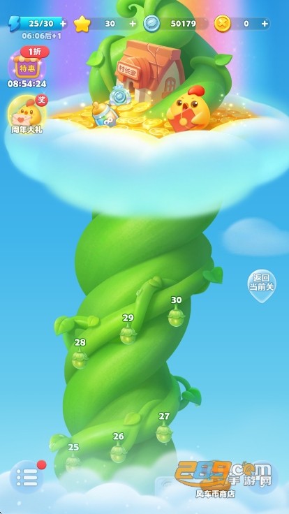 多类型关卡目标玩法:包含四种核心关卡类型,分别是达到指定分数即可通关的分数关卡、消除冰块等目标的指定消除关卡、收集金豆荚等物品的收集关卡,以及收集宝石的云朵关卡,不同关卡玩法各有侧重。