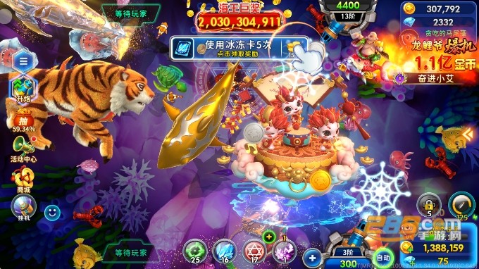 道具与养成助力:使用冰冻、高爆弹等道具提升效率;升级炮台、解锁法宝,增强捕鱼能力与爆率。