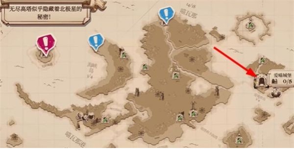 前往下图感叹号位置可找到黄金高塔,需要寻找四把钥匙才能抵达顶层。