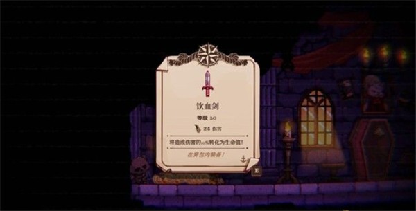 吸血鬼是你必须完成《八位城堡》才能获得的武器。不过,一旦获得,你可以把刀刃造成的部分伤害当作生命值。这让你可以近身对抗敌人,而不用担心过多的血量损失。每次攻击都会恢复你的生命值,总体损失不太可能太多。