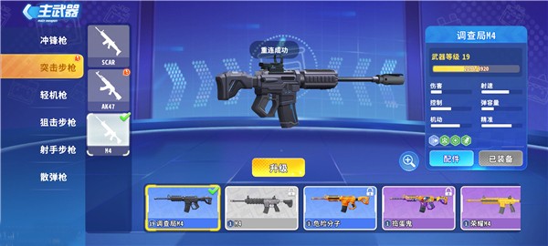 在枪战精英中,武器多样。冲锋枪有MP5和野牛两类,我比较喜欢野牛,因为伤害和弹容量比MP5要好。突击步枪有SCAR、AK47和M4,体验下来感觉M4最猛,射速高伤害也高。