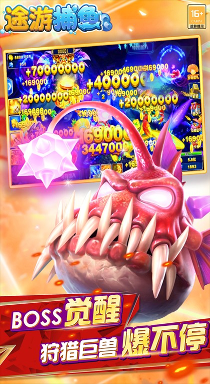 场景鱼种与BOSS内容丰富多样:采用影视级3D画质,打造风暴海湾、章鱼传说、东海龙宫等多元主题渔场,场景细节饱满、特效炫酷,搭配杜比声3D环绕音效,带来沉浸式捕鱼体验;收录数十种形态各异的鱼类,还有美人鱼、机械鲨、远古暝兽、神兽白虎等特色鱼种与BOSS,每种目标对应不同分值,稀有BOSS击杀后可掉落神器碎片、高额金币与强力弹头。