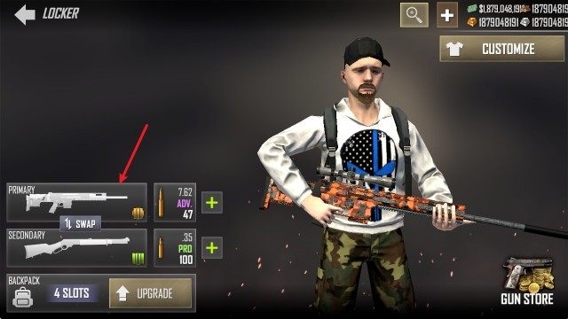 1、主界面中点击左下角的LOCKER,进入背包当中,然后选择需要改装的武器。