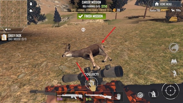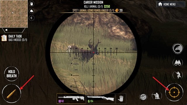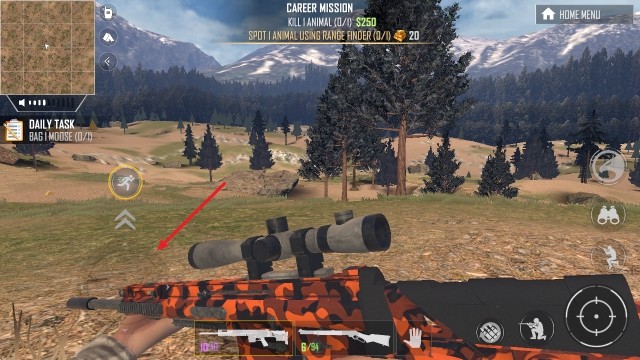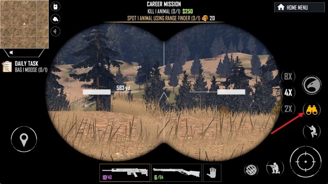 3、进入场地后,首先通过右侧的望远镜来找寻猎物。