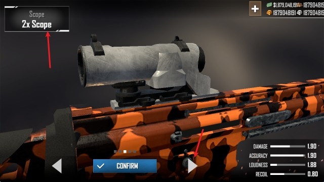 3、以狙击镜为例,我们可以更换不同的倍镜。