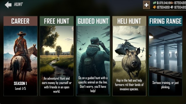 美国射手游戏,带你体验户外冒险射击的乐趣。玩家将使用狙击枪,在大草原上狩猎动物。游戏支持联机,拥有真实天气系统和物理引擎,多种地图可选。