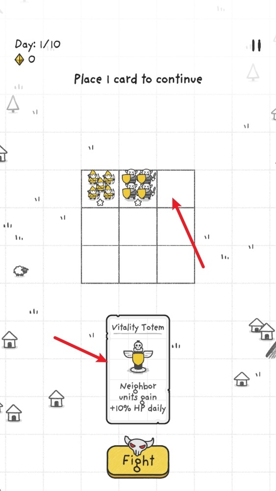 1、开始后,拖动下方的卡牌放置到九宫格中,布置你的防御阵容。