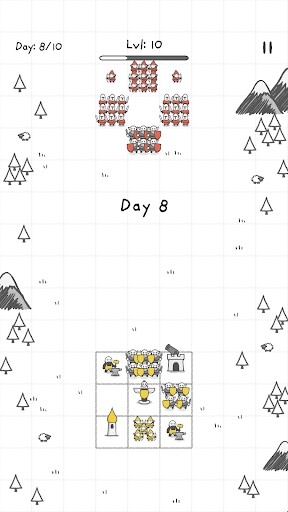 岩纸王国英文名叫做Rock Paper Kingdoms,是一款画风简单但玩法丰富的策略塔防游戏。进入游戏。玩家将看到由黑白配色组成的地图,在下方有一个九宫格,而在上面就是源源不断的敌人,这时玩家就需要放置士兵在九宫格里,来抵御敌人的进攻。游戏极具策略性,欢迎感兴趣的小伙伴在本站下载。