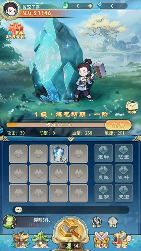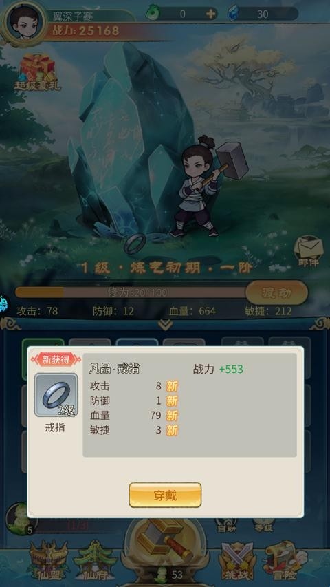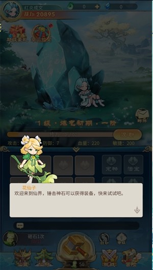 1、通过锤击神石获得新装备,提升自己的能力