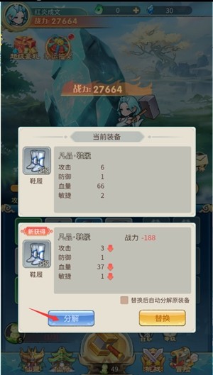 2、通过分解不需要的装备,获得灵力和灵石