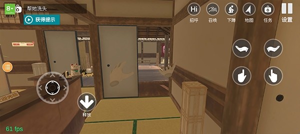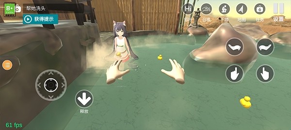 3、左右手指手势,可以操作左右手,拿起物品,比如拿起香皂,抓起马缰绳骑马,当物品出现下方图标提示时,就可以拿起物品或操作物品了;